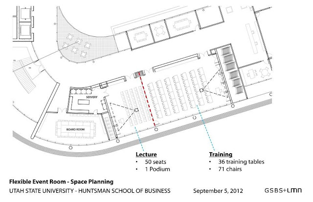 In planning for different spaces, we met with different groups of students, faculty and administrative staff. In every meeting we conducted with these different groups, every single group concluded that one of the highest priorities of our new building had to be more event space like the O.C. Tanner Lounge. That’s why we knew that the Huntsman Hall would have to have some added special events space for things like club meetings, faculty presentations, department meetings, training seminars, recruiting receptions, etc.